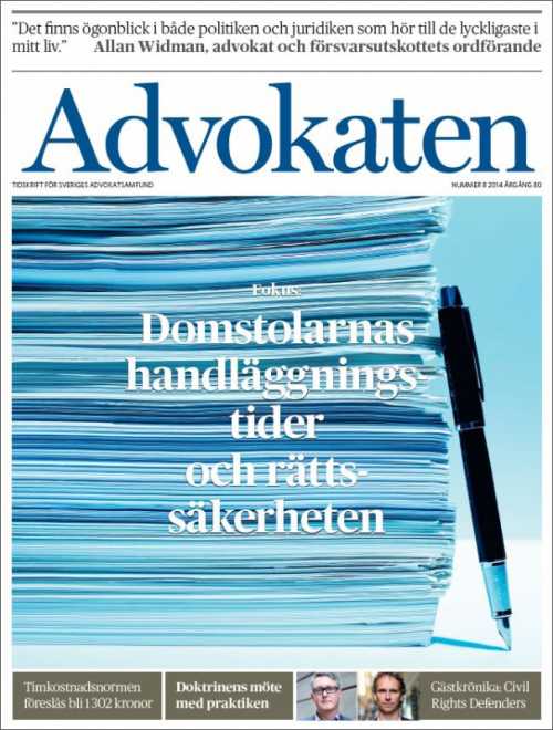 Tidskriften Advokaten har funnits sedan 1935 och är en av Sveriges viktigaste tidskrifter inom rättsområdet. Advokaten, som ges ut av Sveriges advokatsamfund, speglar advokatkårens yrkesfrågor, problem och utveckling samt rättsvetenskapliga frågeställningar. Tidskriften innehåller också litteraturtips och recensioner, aktuella kurser och viktiga personnyheter.